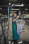 - Fisheries biologists weigh trout.